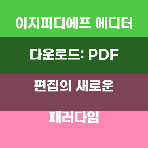 이지피디에프 에디터는 PDF 편집의 새로운 기준을 제시하는 소프트웨어입니다. 사용자 친화적인 인터페이스와 다양한 기능 덕분에, 많은 사람들이 이 프로그램을 선택하고 있습니다. 다운로드 과정도 간단하여, 누구나 쉽게 시작할 수 있습니다.