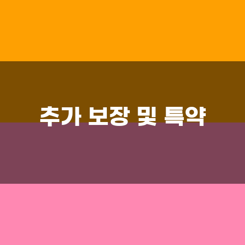 현대해상 무배당퍼펙트플러스종합보험은 기본적인 보장 외에도 다양한 추가 보장 및 특약을 통해 고객의 요구에 맞춘 맞춤형 보험 설계를 가능하게 합니다. 고객은 필요에 따라 추가 보장을 선택할 수 있으며, 이를 통해 보장 범위를 더욱 넓힐 수 있습니다.