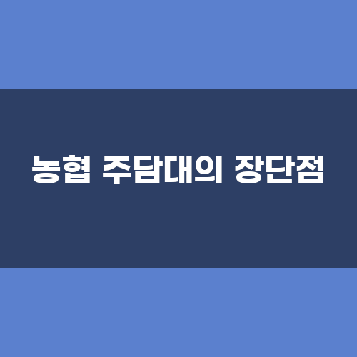 농협의 주담대는 여러 장점과 단점이 있습니다. 먼저, 장점으로는 농협이 농업과 농촌을 지원하는 기관으로서, 대출자가 필요한 자금을 신속하게 지원할 수 있다는 점입니다. 또한, 농협은 다양한 대출 상품을 제공하여 대출자가 자신의 상황에 맞는 상품을 선택할 수 있도록 도와줍니다.